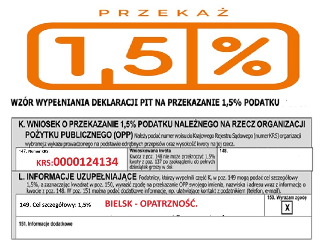 1,5% na cele parafialne: KRS:0000124134 ; Bielsk Opatrzność 1,5% na cele parafialne: KRS:0000124134 ; Bielsk Opatrzność 15.02.2026 Zbigniew